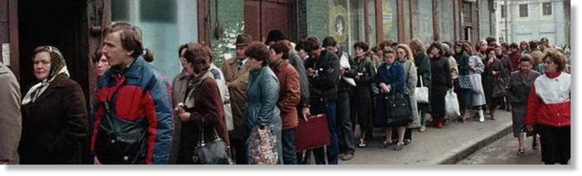 В СССР искусственно создали ситуацию, когда пустые полки магазинов осаждали обозленные, голодные люди. Такое могло привести только к одному — к бунту. Что и произошло, люди протестовали, эти протесты умело использовались против центральной власти, что в итоге привело к развалу страны…
