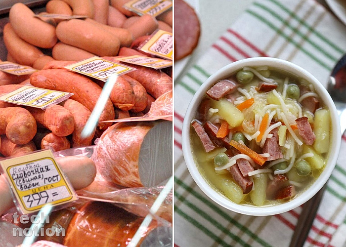 Чтобы приготовить дешевое блюдо, студенты чистили полкило картошки, нарезали морковь и лук, запасались сосисками и двумя плавлеными сырками. Сначала в ход шла картошка. Когда вода закипала, к ней отправляли лук, морковь и нарезанные кружочками сосиски. В конце в суп попадал плавленый сыр.