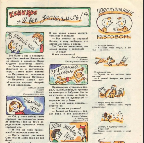 Также мне очень нравился журнал «Костер». Особенно рубрика «И все засмеялись». Как же мне нравились забавные истории. А какие иллюстрации! И еще в «Костре» часто печатали очень интересные рассказы. Многие страницы я зачитывала в прямом смысле до дыр.