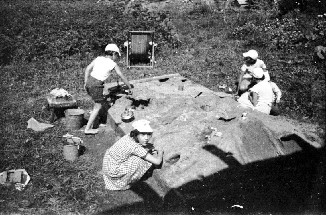 И опять вернусь к игрушкам. Если честно, то я играла в них вплоть до 15 лет. И иногда даже позже, когда придумывала свои сказочные истории. Например, вот здесь мне 12,5 лет. На переднем плане я в платье и кепочке)) Играю в песочнице на даче. Рою подземные тоннели для персонажей.