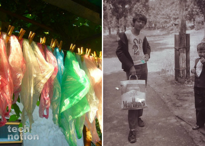 Когда в Советском Союзе появились легендарные полиэтиленовые пакеты, они стали самым желанным подарком на день рождения. Особенно яркие, фирменные, с рекламой. С такими пакетами ходили по магазинам и просто по улице, дома их бережно стирали, штопали и отправляли сушиться.