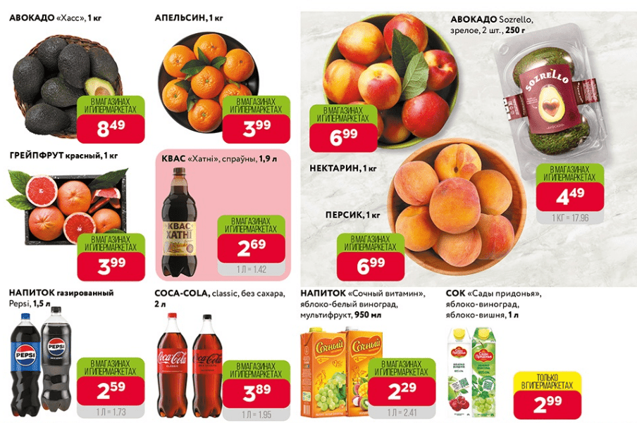 Нектарины – 6,99 BYN / 2,01 eur/ 196 rub за килограмм.