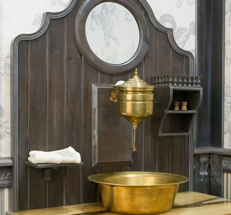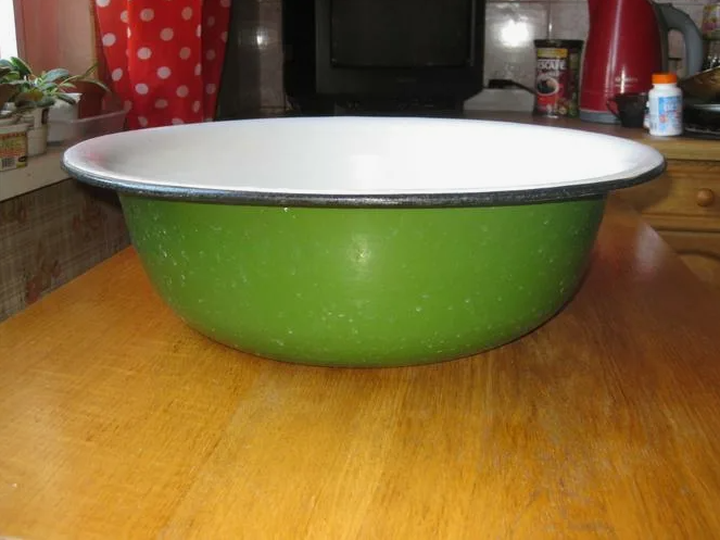 На фото выше он типа золотой(а может и вправду), а вот во времена союзов, на дачах обязательно имелся большой эмалированный таз…