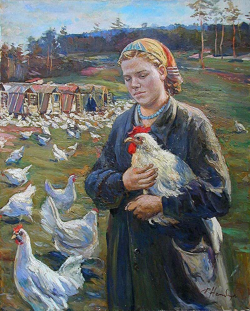 Работать Люба Сошникова устроилась на птичник. Рано утром бежала на работу, где открывала все засовы и квохчущая орава высыпала на волю, ковыряясь в земле и, ожидая, когда им насыплют корм.