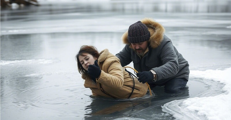 Подбегая к реке, они услышали пронзительный крик. Вероника барахталась в проруби, пытаясь выбраться, но безуспешно. Тимур действовал быстро: он схватил большую палку, спустился на тонкий лед и начал осторожно продвигаться к девушке, протягивая ей импровизированное спасательное средство. Вероника ухватилась за палку изо всех сил, и вскоре Тимур смог вытащить её на относительно безопасный участок. Он быстро снял свою куртку, завернул в неё дрожащую от холода девушку и, поддерживая её на руках, направился к машине скорой помощи, которая ждала неподалёку.