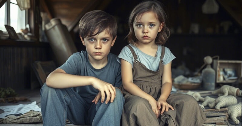 Сердце Вали забилось чаще. Она осторожно приоткрыла дверь и заглянула внутрь. В полумраке, на грязной, засаленной тряпке, сидела маленькая девочка с растрёpanными светлыми волосами и огромными испуганными глазами. Она крепко прижимала к себе старый клок ткани, словно это был её единственный защитник, и смотрела на брата с таким выражением лица, которое невозможно было описать иначе, чем абсолютное доверие.