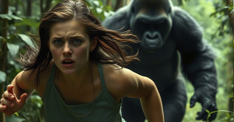Массивная горилла встретила девушку в густых зарослях и утащила в свою пещеру.