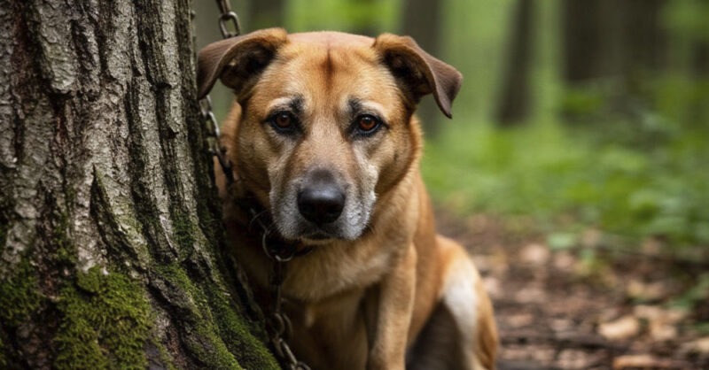 Пса увезли глубоко в лес и оставили привязанным к дереву, надеясь избавиться от него навсегда.