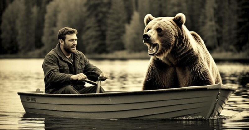 Мужчина резко дернул руль, лодка закачалась. Егор инстинктивно ухватился за борт, но рука соскользнула, и холодная вода хлынула ему в лицо. Сердце заколотилось, будто хотело выскочить. Медведь приближался. Теперь были видны его лапы, разбрасывающие воду, его мокрую морду. Он нырнул, всплыл всего в паре метров от лодки, ударил лапой по борту — глухо, мощно. Лодку качнуло, Егор едва не вывалился, но удержался.