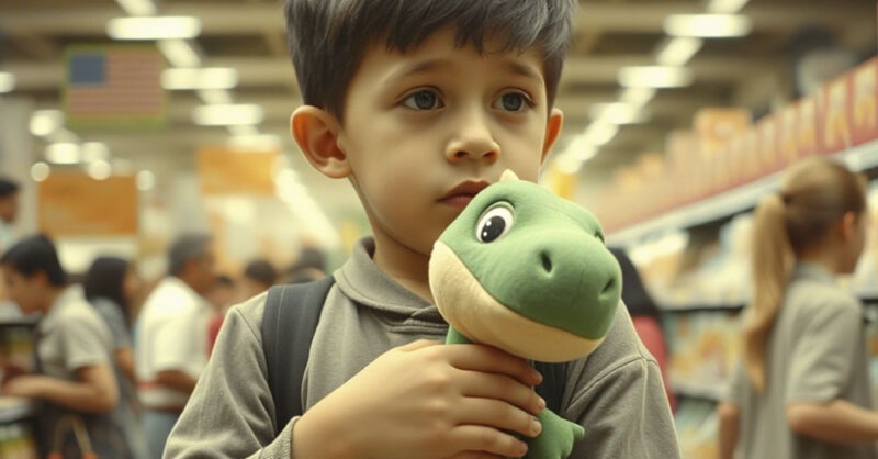 Она вздрогнула и обернулась. Перед ней стоял маленький мальчик лет шести-семи. Тоненький, с растрёпанными кудряшками, в слишком большой куртке. В руках он крепко прижимал старого, потрёпанного динозавра с одним глазом, будто тот был его единственным спасением.