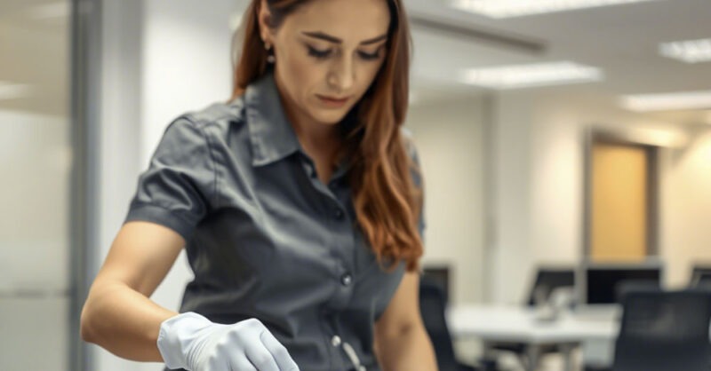 На следующий день Михаил нарочно задержался в офисе, ожидая Леру. Когда все сотрудники разошлись, раздались знакомые шаги, звяканье ключей и шуршание уборочного инвентаря. Он принял серьёзный вид — уборка обычно начинается с его кабинета.