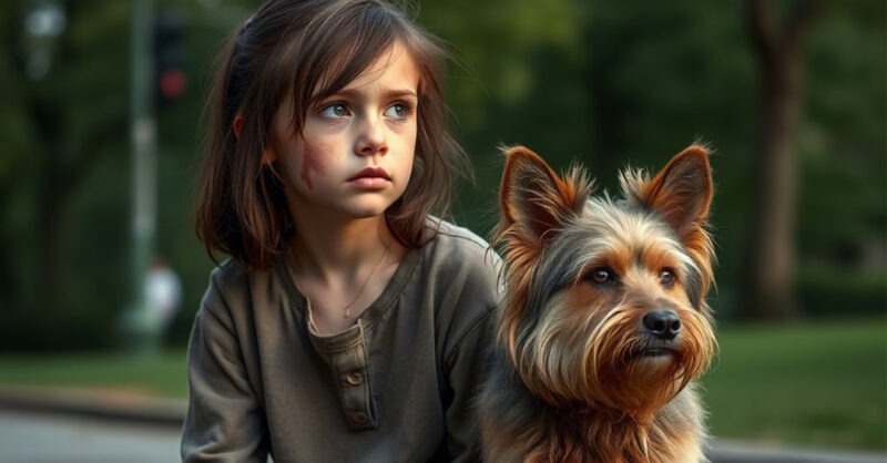 Это была большая дворняжка, похожая на лайку: высунутый язык, настороженные уши и пристальный взгляд, впившийся в заплаканную девочку. Это был не просто пёс — это был стражник, защитник. И в этот самый миг её жизнь изменилась навсегда.