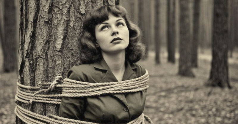 Вокруг простирался густой лес. Сосны плотно окружали их, создавая почти непроницаемую стену. Никаких следов людей. Он привязал Алису к толстому дереву, проверяя прочность узлов.