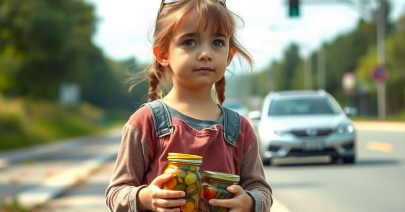 Девочка продавала бабушкины закатки, чтобы выжить. Намедни неподалёку с ней остановилась необычная машина