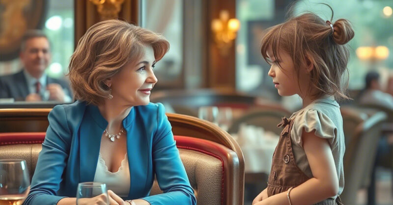Она посмотрела на девочку. Потом — на официанта, который стоял в стороне, с тревогой в глазах. И тихо, но твёрдо сказала: