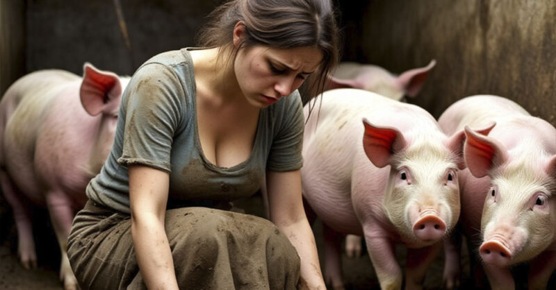 В хлеву, среди навоза и вони, Лена села на солому и разрыдалась. Слёзы текли градом, смешиваясь с грязью. Вдруг дверь скрипнула. Вошёл свёкор. Он молча закрыл за собой дверь, подошёл к ней и вложил в руки узелок.