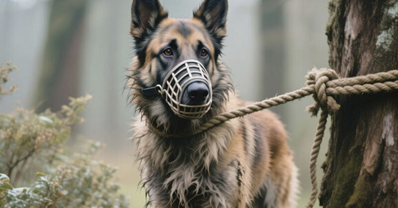 Овчарку обвязали вокруг дерева так, что она не могла ни сидеть ни лежать