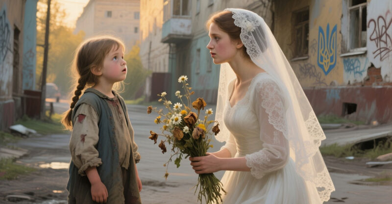 Невеста в белоснежном платье, шуршащем при каждом шаге, замерла у входа в ресторан. Внутри её ждали гости, музыка, торт с тремя ярусами и жених — Артём. Но слова ребёнка пронзили тишину, как удар грома.