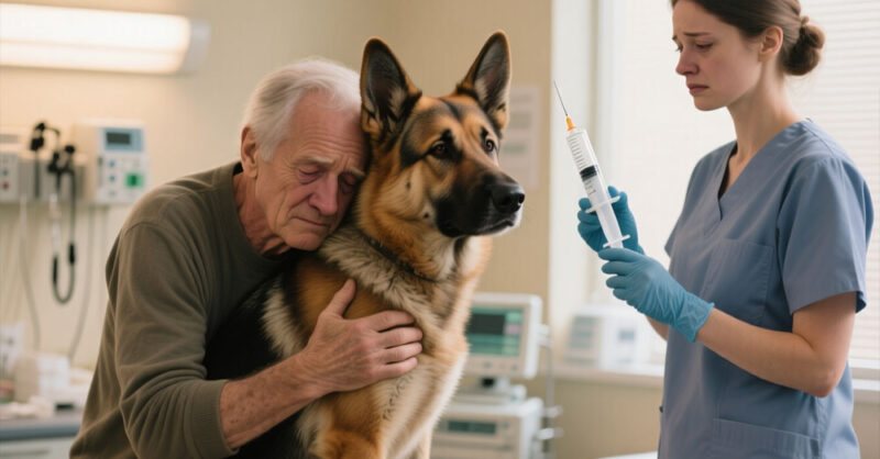 Пёс обнял хозяина в последний раз перед усыплением, и вдруг ветеринар закричала: ‘Стоп!’ — то, что произошло дальше, заставило всех в клинике голосить