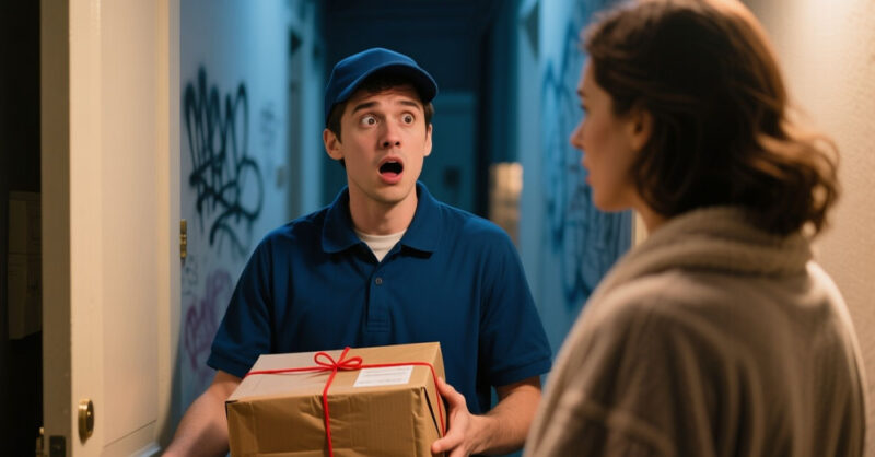 Курьер привёз бандероль в состоятельный особняк и застыл, когда открыла дверь его супруга.