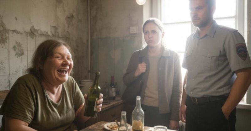 В доме, куда они пришли, стоял такой густой и едкий дым, что глаза сразу начинали слезиться. Мать девочки, Светлана, сидела за столом с полупустой бутылкой. Она выглядела грязной, опухшей от алкоголя, на лице проступали синие синяки.