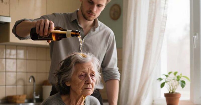 И он не просто выплеснул пиво. Он с силой, с каким-то садистским наслаждением, вылил всё содержимое ей прямо на голову. Золотистая жидкость хлынула на её седые волосы, залила лицо, закапала на платье, на стол, на пол.
