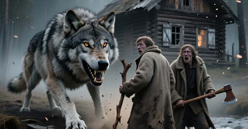 Никита, наконец придя в себя, рванулся к выходу, но волк одним легким, мощным прыжком отрезал ему путь. Загнанный в угол, мужчина поднял руки в немом ужасе: