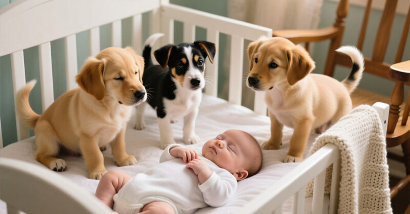 Прошла неделя, и дом снова наполнился звуками. Но на этот раз это был новый, пронзительный и чистый крик. На свет появился их сын – маленький, хрупкий, словно сотканный из утреннего света и надежды. Его появление в мире, который только что погрузился в траур, казалось необъяснимой загадкой, странной игрой судьбы. Но когда новорожденного впервые принесли домой и положили в его колыбельку, стоявшую рядом с корзинкой щенков, произошло нечто необъяснимое. Три крошечных комочка зашевелились, забавно завиляли своими маленькими хвостиками и, преодолевая собственную слабость, потянулись к ребенку. Они тихонько повизгивали, тыкались своими влажными носиками в край одеяла, словно пытаясь опознать своего. Мальчик бессознательно вытянул крохотную ручку, и его пальчики коснулись мягкой шерстки. В тот самый миг между ними возникла невидимая нить, и с этой секунды они стали одним целым, неразлучными спутниками.