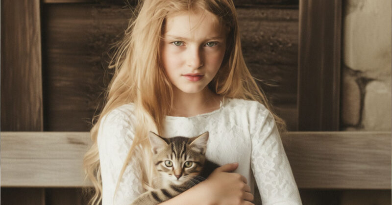 Поздний весенний вечер 1945 года застилал небо над деревенскими крышами легкой, прозрачной дымкой. Последние лучи солнца цеплялись за резные наличники старого дома, окрашивая их в золотисто-медовые тона. За домом, на завалинке, еще хранившей дневное тепло, сидела двенаридцатилетняя девочка. В ее тонких, не по-детски упрямых пальцах беспомощно упирался худенький, лохматый комочек серой шерсти с огромными, не по размеру, ушами.