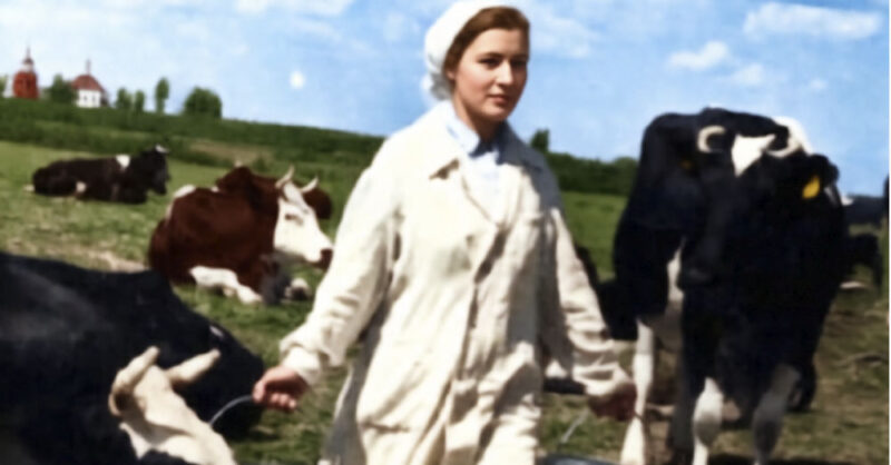 Вокруг уже собрались другие доярки. Они стояли молча, и в их молчании не было осуждения — была тревога за животное и какое-то глубокое понимание происходящего. И тогда в конце прохода возникла знакомая фигура. Галина Ивановна подходила не спеша, её шаги были мерными и тяжёлыми. Она окинула взглядом сцену: мечущуюся Ивушку, Веронику с бесполезным флаконом в дрожащих пальцах, молчаливых девушек.