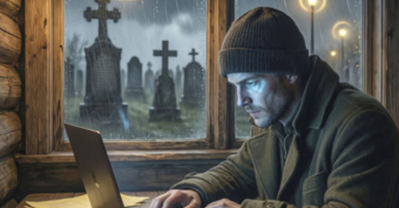 Ему почудился легкий шорох, едва уловимый шелест за мутным стеклом. Артем замерел, затаив дыхание, потом медленно, будто против воли, поднялся с жесткого стула и приблизился к окну. За кованой оградой, в самой глубине поля вечного покоя, среди темных силуэтов памятников, четко вырисовывалась неподвижная фигура. Она не двигалась, не дышала — просто стояла, слившись с ночью у одного из надгробий, будто выросла из самой земли.
