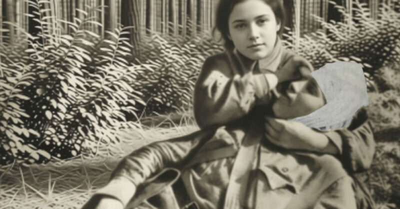 Лукошко выскользнуло из ослабевших пальцев, и рассыпавшиеся ягоды, словно капли крови, заалели на бурой хвое. На земле, прижавшись спиной к дереву, лежал незнакомый мужчина в потрепанной, но опрятной гимнастерке. Лицо его было мертвенно-бледным, одна рука судорожно сжимала живот, и сквозь пальцы проступало темное, почти черное пятно.