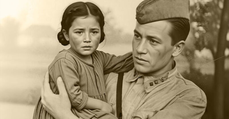 Последние лучи заходящего солнца золотили пыльную дорогу, ведущую к деревне. Артём шёл медленно, будто боялся спугнуть тишину этого вечера. Его тень, длинная и худая, скользила по придорожным травам. За спиной у него был потрёпанный вещмешок, а за руку он держал маленькую девочку, чьи босые ноги ступали осторожно, будто по горячим углям.