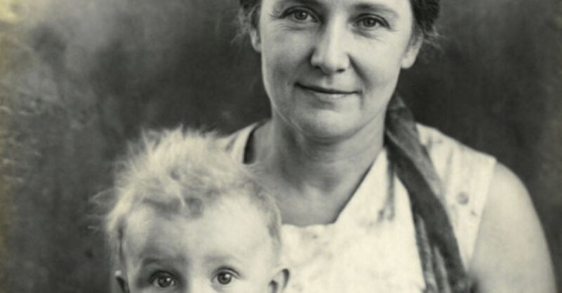 Анфиса стояла посреди горницы, прижимая к себе годовалого Андрея. Мальчишка, увидев чужого дядьку, спрятал лицо у матери на груди.