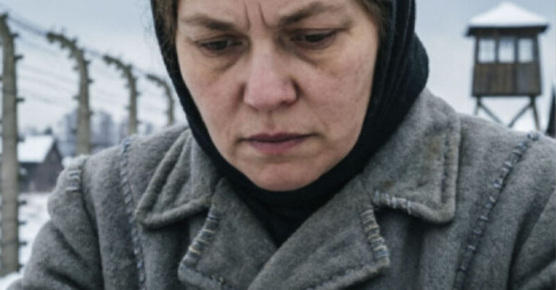 Тёмные волосы её, тронутые преждевременной сединой у висков, были уложены старомодным кольцом вокруг головы и прикрыты лёгкой косынкой, выцветшей до неузнаваемого серо-голубого оттенка. На ней был ватник, когда-то защитного цвета, а теперь приобретший болотный оттенок, и узкая талия перетянута солдатским ремнём с потускневшей пряжкой. За спиной висел наплечный мешок, сшитый из мешковины, в котором угадывались немногие пожитки — всё, что осталось от прежней жизни.